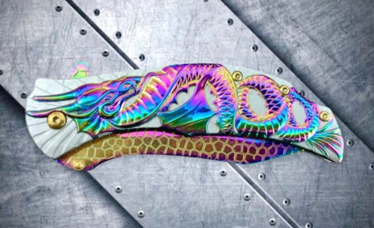 * 8” Purple Dragon Mini Cute Knife Spring Assisted Open Blade Folding Pocket Knife. Hunting, Camping, Cute Knife. Cool Knife.